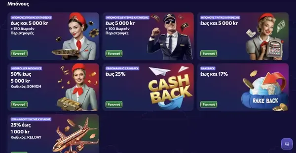 | Weekly Cashback | Έως 25% των καθαρών απωλειών | Υπολογίζεται από την προηγούμενη εβδομάδα |